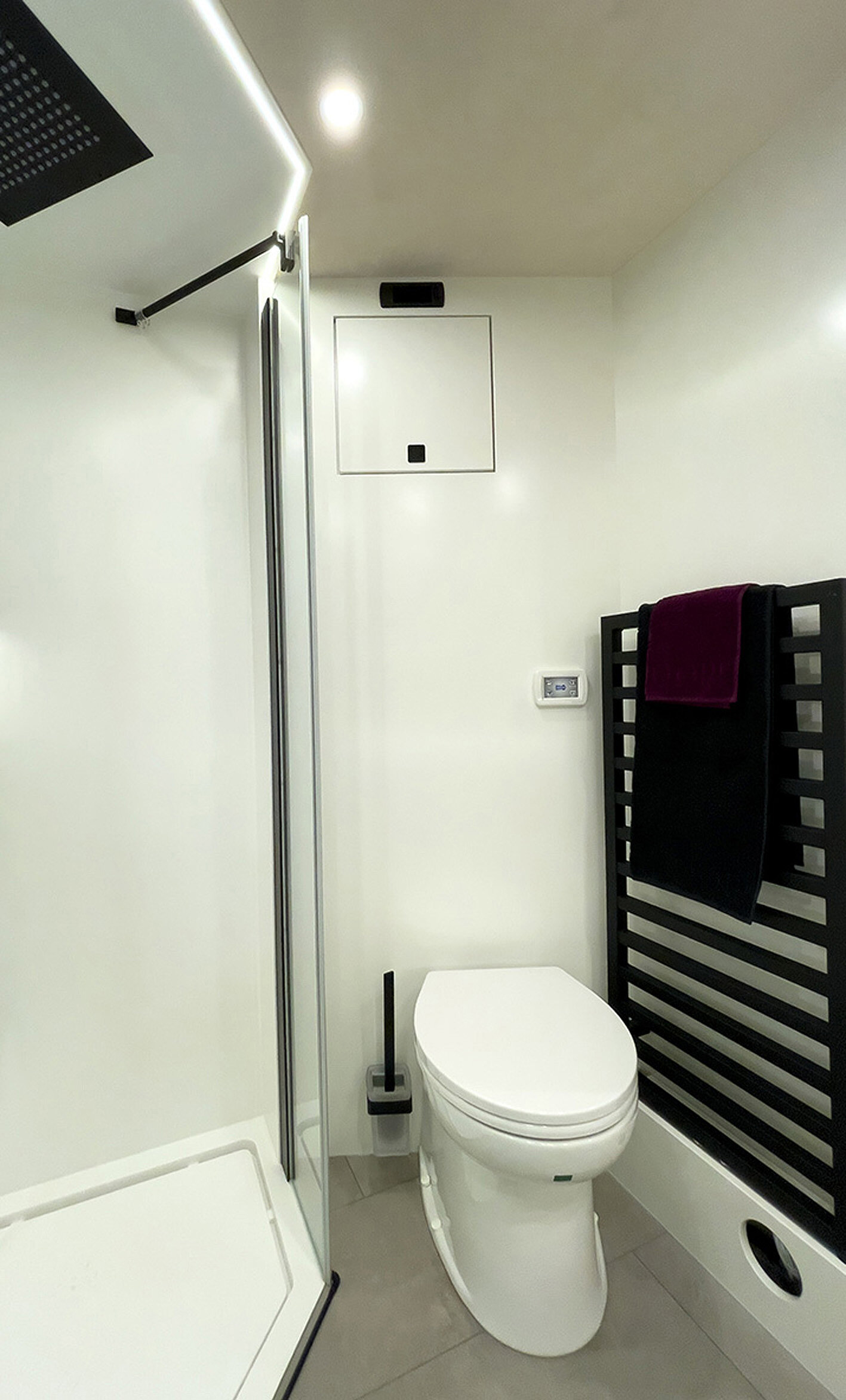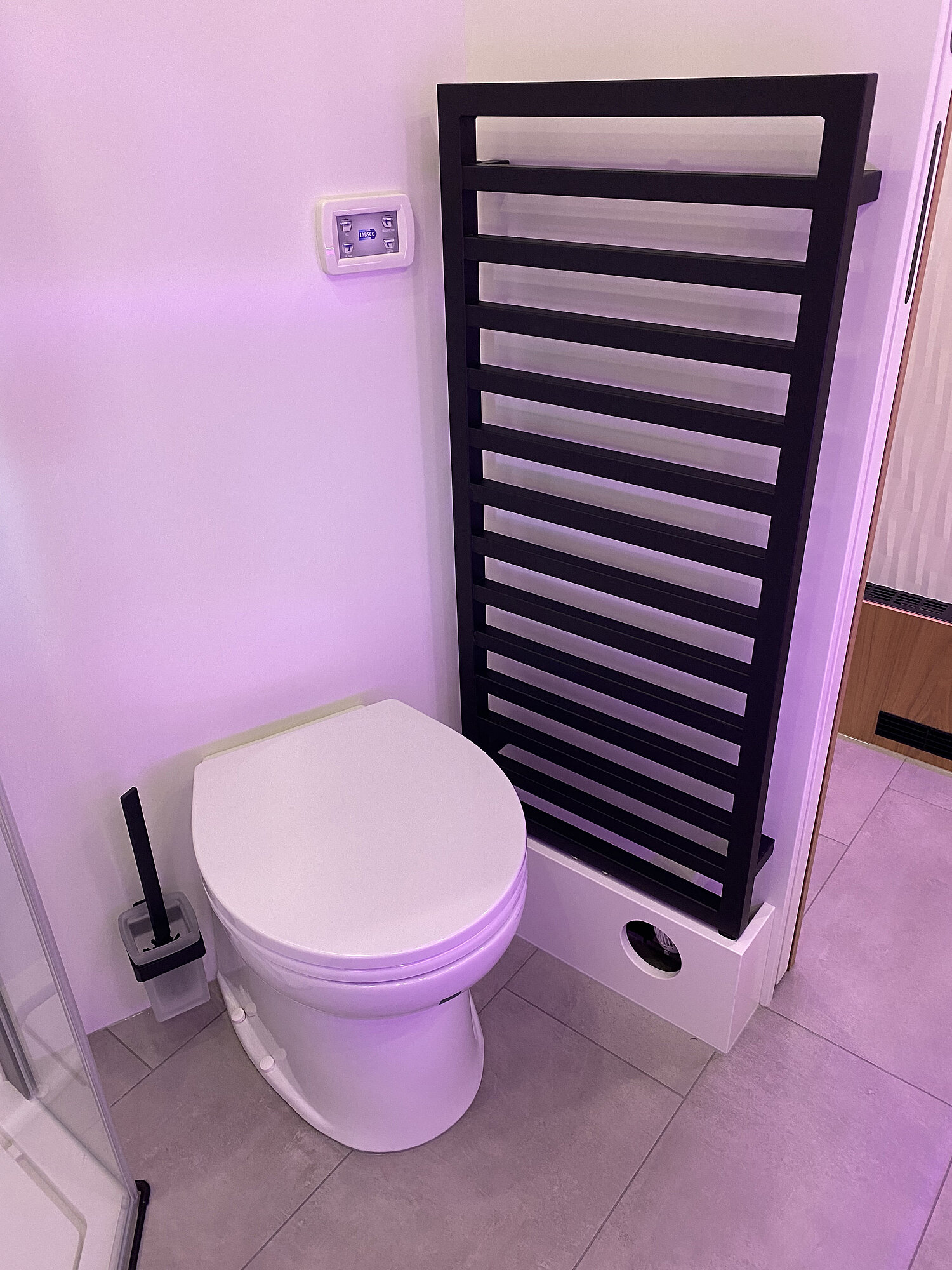 Entsprechend anspruchsvoll ist die für ein Wohnmobil der Marke VARIOmobil in Frage kommende Klientel. Diese erwartet für alle Funktionsbereiche – sei es Küche, Schlaf- oder Badezimmer – denselben Top-Ausstattungsstandard, wie sie ihn von ihren „festen“ Domizilen gewohnt sind. Und zu einem ästhetisch-modernen Badezimmer auf voller Fahrzeugbreite gehört eben auch ein schicker Design-Heizkörper, um Hand- oder Badetücher aufzuhängen und angenehm vorzuwärmen.