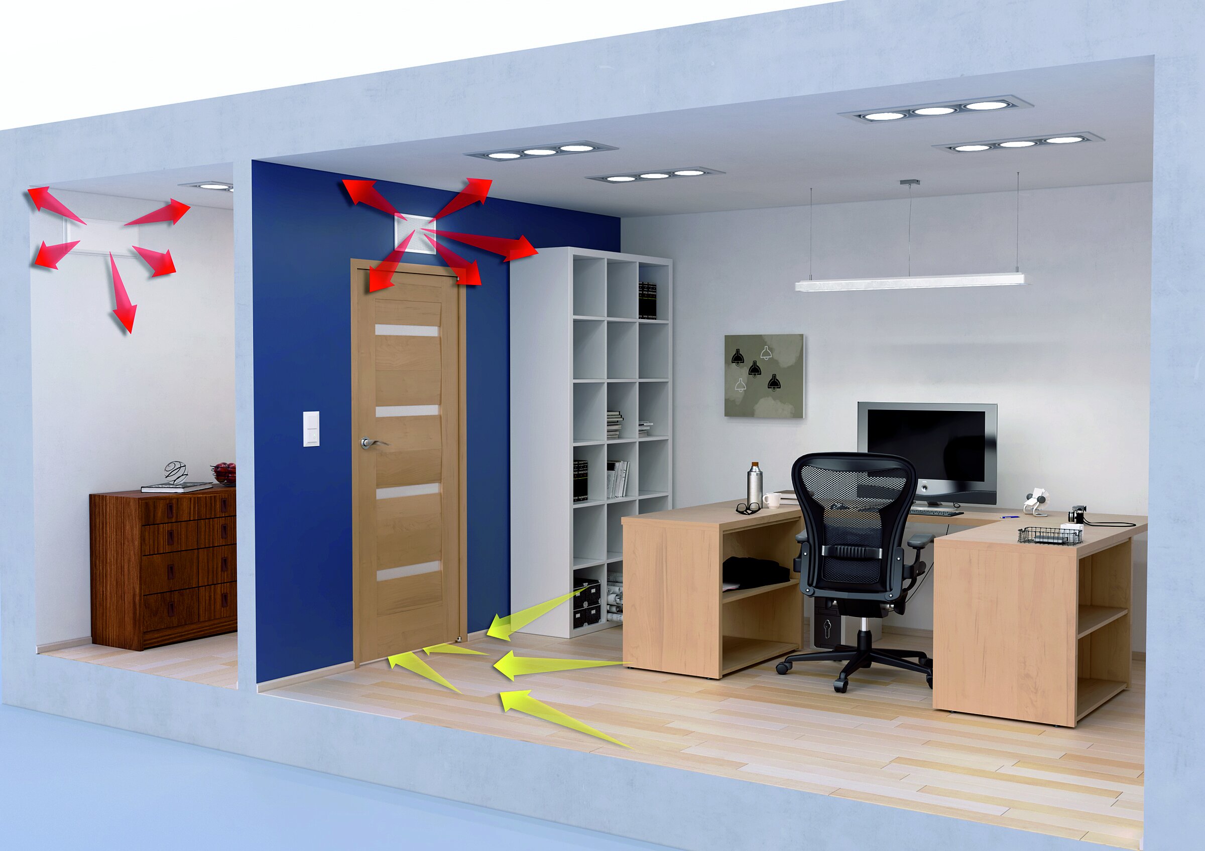 Die behagliche Belüftung sämtlicher Räume einer Wohneinheit ist mit einem Komfort-Lüftungssystem aufgrund baulicher Gegebenheiten nicht immer möglich oder zielführend, z.B. wenn bei einer zentralen Komfortlüftung übermäßig lange Luftleitungen notwendig wären oder wenn innenliegende Räume einer dezentral belüfteten Wohneinheit mit belüftet werden sollen. Hier schafft eine Produktneuheit von Raumklimaspezialist Zehnder nun Abhilfe: Zehnder ComfoDuct Activo S60 sorgt, in der Wand z.B. oberhalb der Türe installiert, für effektive Raumdurchströmung und optimalen Luftaustausch. Dank seiner kompakten Bauweise braucht der aktive Überströmer nicht viel Platz. Hinter dem ansprechenden und dezent gehaltenen Design-Abdeckgitter des Gehäuses befindet sich ein geräuscharmer Ventilator, der Volumenströme von 0, 30, 50 oder 60 m3/h erlaubt. Der Abtransport der verbrauchten Luft geschieht in der Regel durch den Türspalt. Darüber hinaus ist Zehnder ComfoDuct Activo S60 mit einer zusätzlichen Dämmung aus speziellen Schaumbauteilen ausgestattet. Diese reduziert wirkungsvoll die Schallausbreitung von Raum zu Raum und trägt dazu bei, dass der aktive Überströmer für die Bewohner akustisch kaum wahrnehmbar ist.