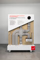 Der Markenerlebnisraum zeigt sich als erlebbare Ausstellung mit zahlreichen, liebevoll designten Ausstellungsmodulen: "Wir nennen sie Pop-ups, weil sie sich auf- und zuklappen lassen und auf Rollen frei im Raum angeordnet werden können. Dadurch kann der Raum zudem für verschiedenste Veranstaltungsformate genutzt werden“, erklärt Eva-Maria Freßle, Leiterin Marketing-Kommunikation, und fügt hinzu: „Auf der Vorderseite wird dabei stets die Nutzerperspektive und auf der Rückseite die technische Ebene abgebildet.“ Den fünf Popups sind insgesamt sieben kompakte „Sidecars“ zugeordnet, die eine Vertiefung mit detailreichen technischen Exponaten bieten.