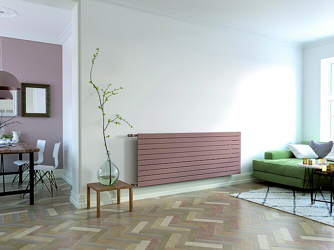 Das Video zeigt nicht nur die Funktionsweise, sondern auch die verschiedenen Anschluss- und Einbaumöglichkeiten. Ob in horizontaler oder vertikaler Ausführung – der Heizkörper ist in vielen Baugrößen erhältlich und individuell konfigurierbar. Auch der sogenannte Nabenstand (Abstand der Anschlüsse für Vor- und Rücklauf) lässt sich auf Wunsch anpassen. Damit kann Zehnder Nova Neo ohne Stemmarbeiten an vorhandene Rohrleitungen angeschlossen werden.