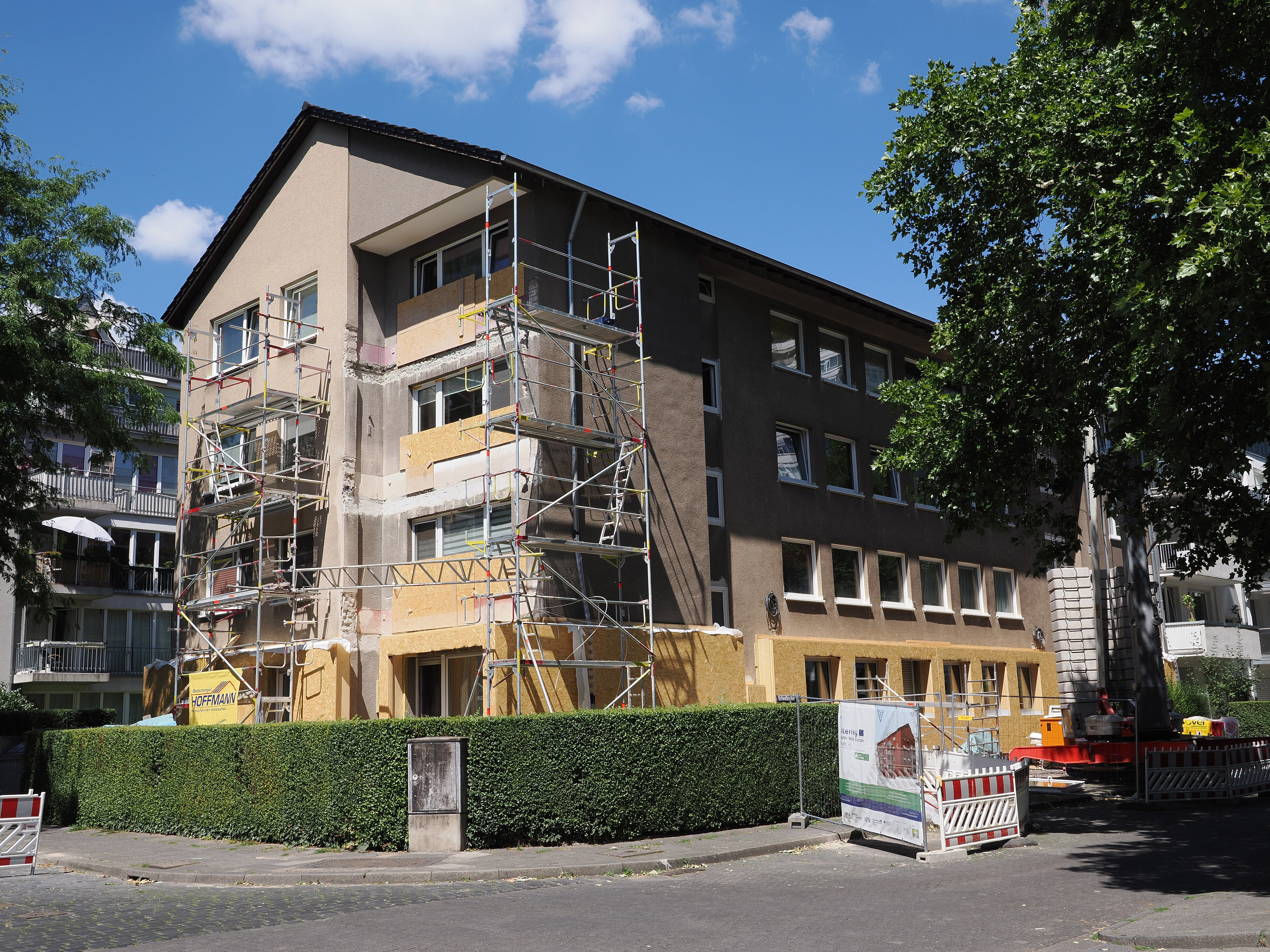Das 1961 erbaute Mehrfamilienhaus der als Bauherrin fungierenden „Wohnungsgenossenschaft am Vorgebirgspark“ im Kölner Stadtteil Zollstock mit seinen 992 m2 Fläche wurde 2021 als Energiesprong-Pilotprojekt ausgewählt und ist eines der ersten Gebäude, das hierzulande nach dem neuartigen Prinzip saniert wird. Es entspricht dabei exakt der beschriebenen Kategorie an Gebäuden, die durch schlechte Dämmung sowie ineffiziente Wärmeerzeugung und -verteilung zum „Klimakiller“-Image des Gebäudesektors beitragen. Damit gehört es zu den ca. 500.000 Gebäuden in Deutschland, die sich laut Auskunft der dena für eine Energiesprong-Sanierung eignen, nämlich „insbesondere Wohnhäuser, aus den 1950er-, 1960er- und 1970er-Jahren mit bis zu drei Etagen, einfacher Hülle und einem hohen Energieverbrauch von rund 130 kWh/m2a oder mehr“.