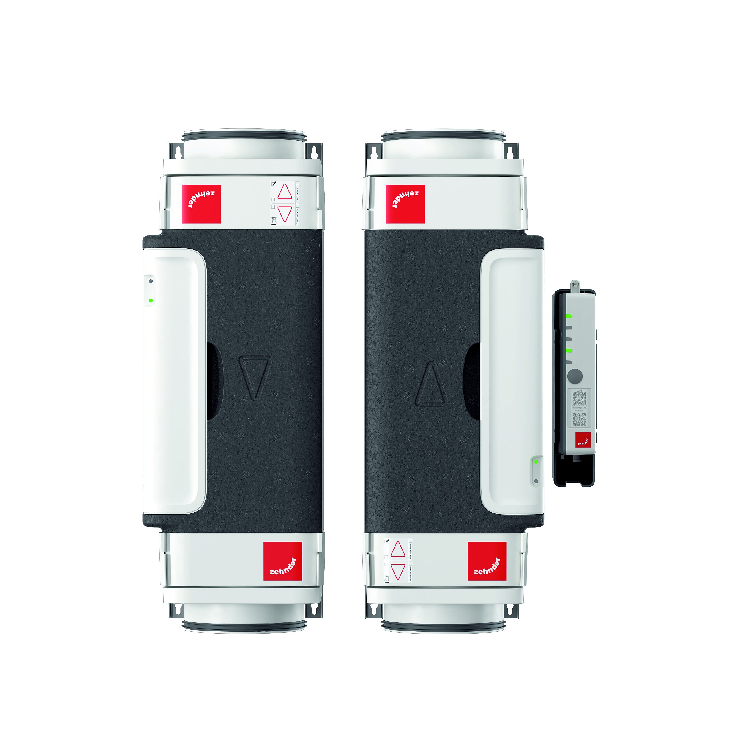 Die aerodynamisch geformten Ventile sorgen nicht nur für eine haargenaue Regelung der Luftvolumenströme von bis zu 360 m3/h und kaum wahrnehmbare Geräuschemissionen – dank Zehnder ComfoVar Aero ist zudem keine Beruhigungsstrecke wie bei vergleichbaren Lösungen erforderlich, sodass die Installation besonders platzsparend erfolgen kann. Die Steuerung des Volumenstromreglers geschieht komplett automatisch und bedarfsgerecht durch optionale CO2-Sensoren, alternativ funktioniert dies auch manuell über einen 3-Stufen-Schalter. In der Variante Zehnder ComfoVar Aero Connect lassen sich mithilfe einer internen Modbus-Regelung sogar alle Volumenstromregler eines Gebäudes von einer zentralen Stelle aus in Betrieb nehmen und steuern. Dank der intelligenten Konstruktion kann der Volumenstromregler zur Wartung mit nur zwei einfachen Handgriffen und ohne Werkzeug ausgebaut werden, ohne dass dabei in die Luftverteilung eingegriffen werden muss. Gleichzeitig besteht so bereits eine praktische Revisionsöffnung mit Zugriff auf das Luftverteilsystem.