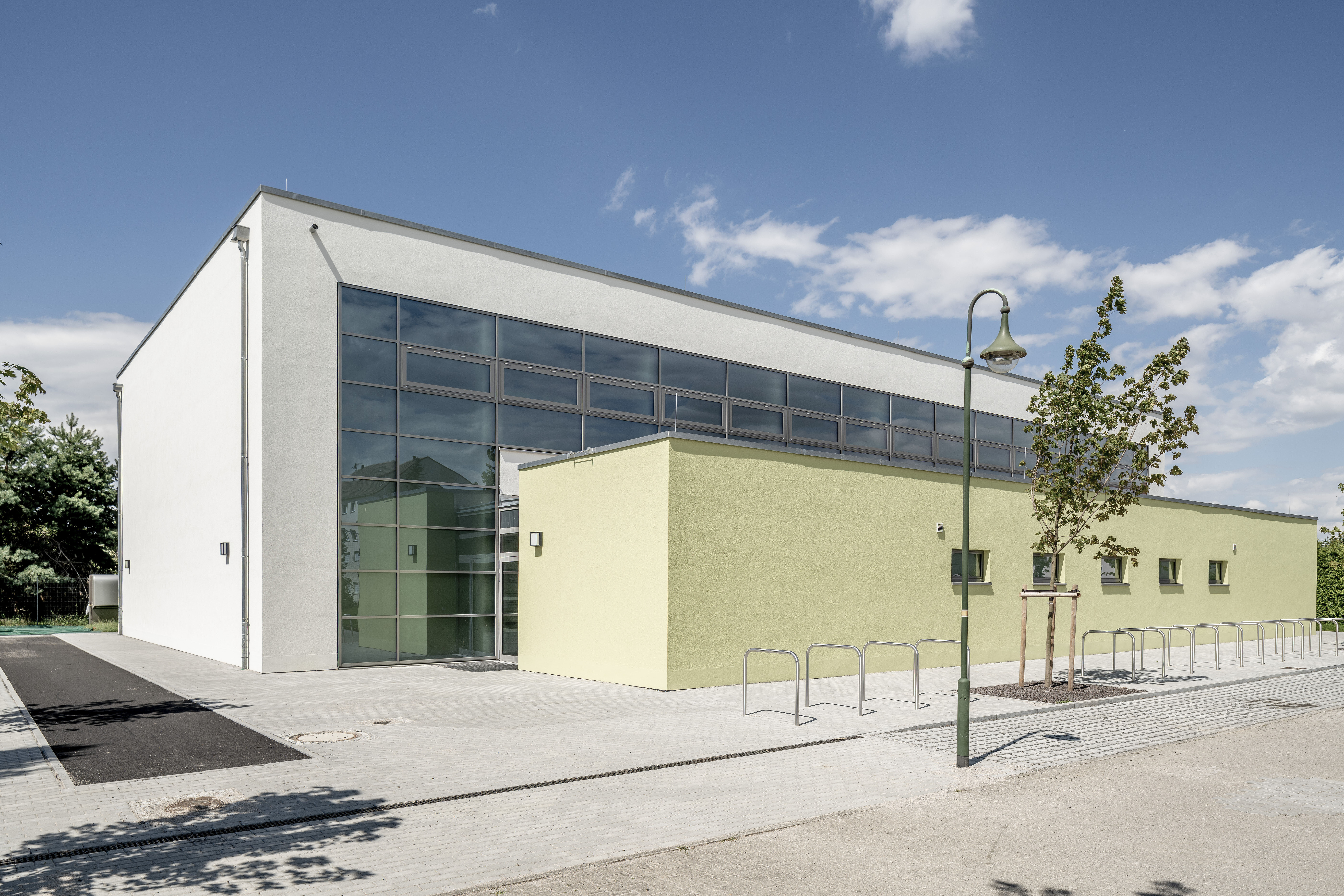 Der Neubau der Belgershainer Turnhalle war für den kleinen sächsischen Ort gleich in mehrerlei Hinsicht ein „Mammutprojekt“, wie es Bürgermeister Thomas Hagenow stolz formuliert. Zum einen stellt das Bauvorhaben mit einem Gesamtaufwand von rund 2,8 Mio. Euro eine der größten Investitionen in der Geschichte der beschaulichen Gemeinde dar. Des Weiteren liegen zwischen erster Entwurfsstudie und Fertigstellung immerhin knapp sechs Jahre. In diese Zeit fallen diverse Anpassungen der Hallengröße, die aufwendige Abstimmung innerhalb der Gemeinde sowie die Akquirierung von Fördergeldern. „Gut Ding will Weile haben“, möchte man sagen – zeigen sich doch alle Beteiligten mit dem Ergebnis mehr als zufrieden. Bei der neuen Turnhalle der Grundschule Belgershain handelt es sich in der Tat um ein eindrucksvolles Gebäude, mit hohem ästhetischem Anspruch und noch dazu auf dem neuesten Stand der Gebäudetechnik. „Wenn man sich das alles vor Augen führt, ist es umso bemerkenswerter, dass es bei dieser schmalen Summe geblieben ist, zumal die Gesamtkosten auch die Erstellung der Freianlagen sowie den Abbruch der alten Turnhalle beinhalten“, freut sich der Bürgermeister. „Die öffentlichen Kassen sind leer und da ist es für so eine kleine Kommune wie Belgershain natürlich eine besonders große Herausforderung.“