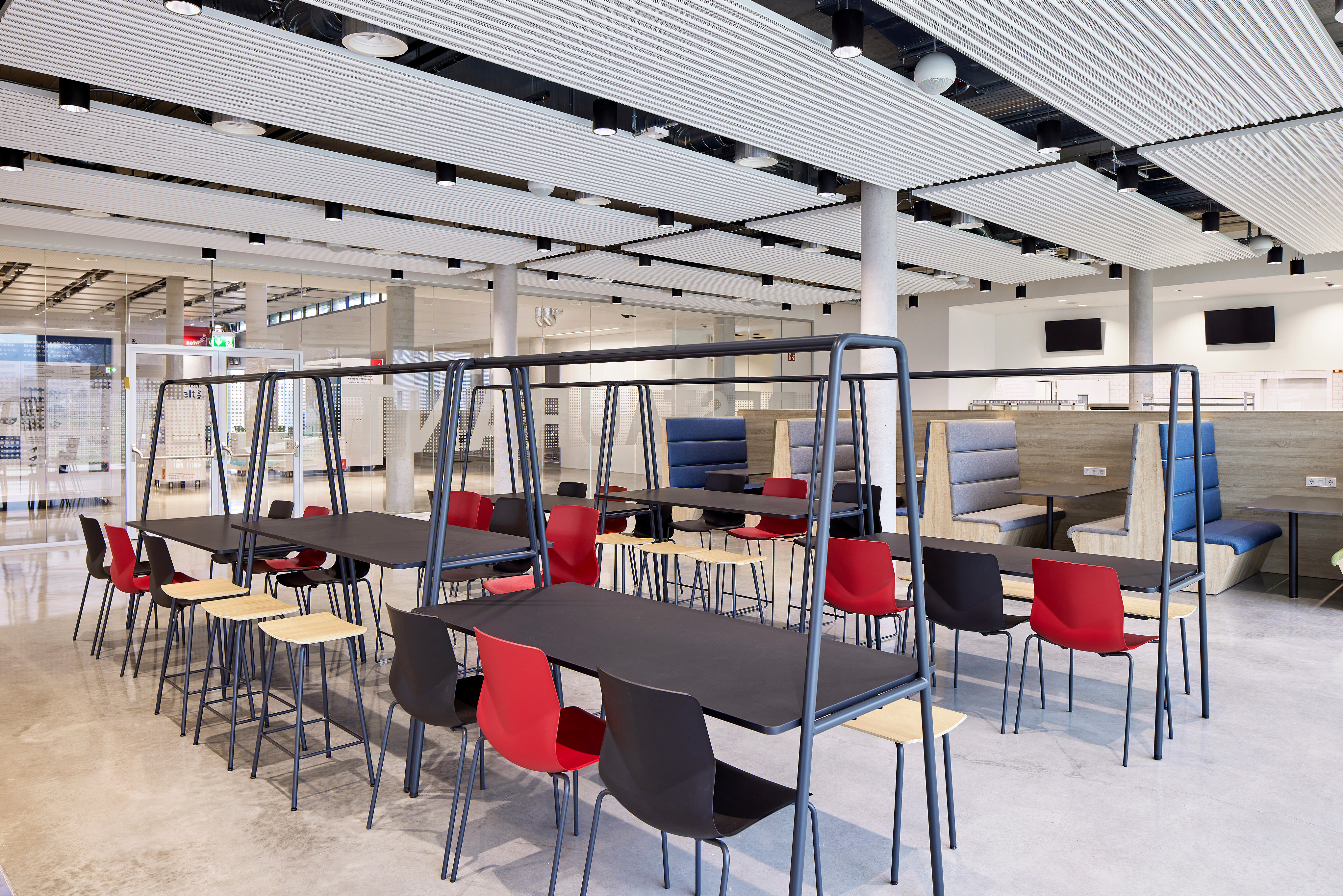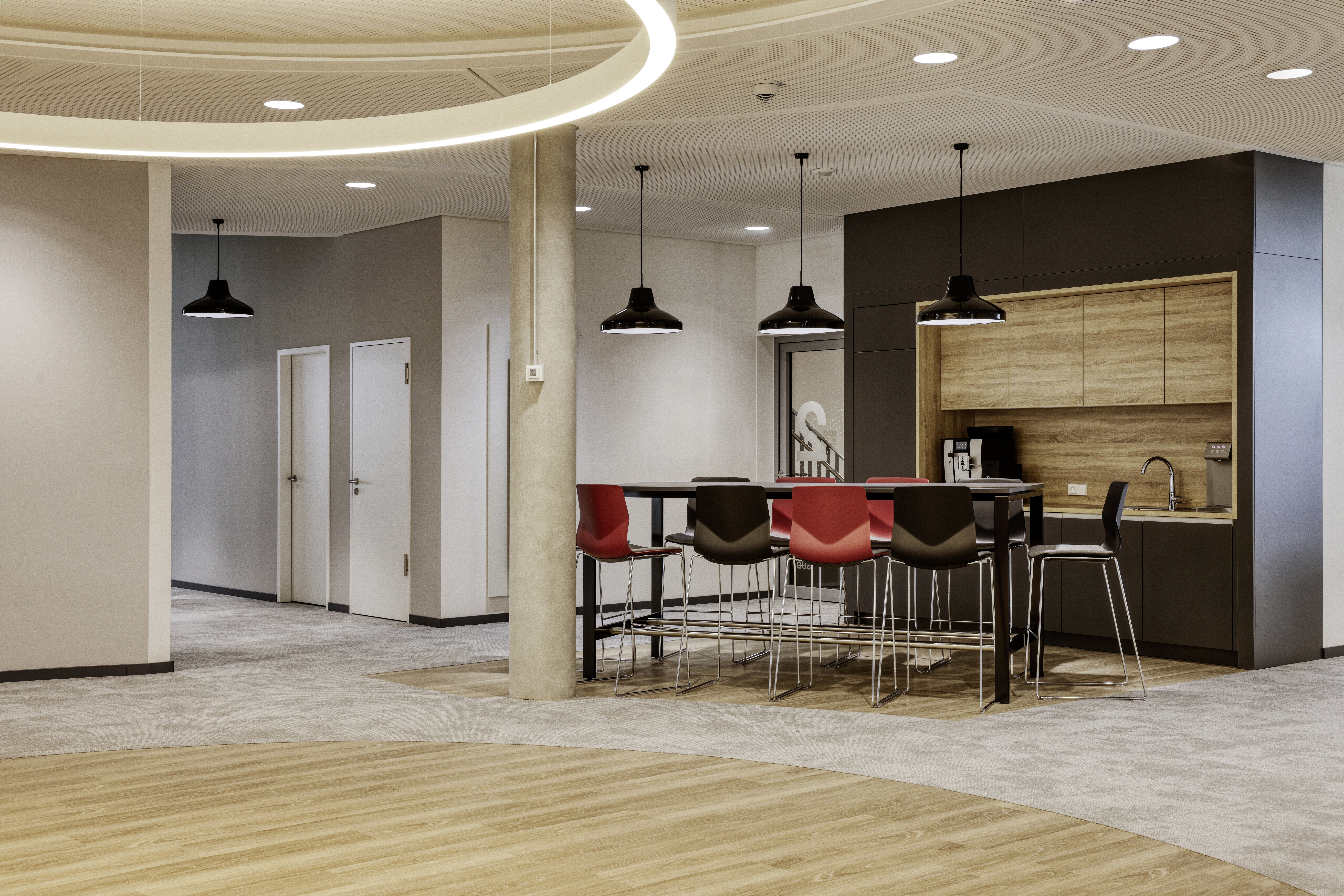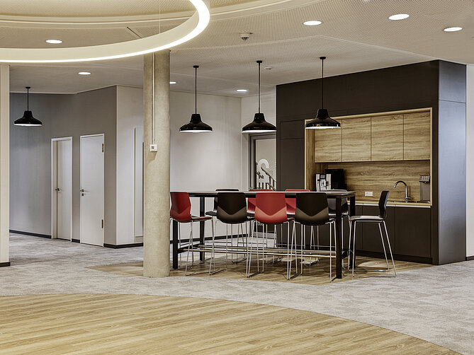 Integrierte Küchenbereiche auf den Büroflächen bieten die Möglichkeit für einen inspirierenden Gedankenaustausch und dank eines stylischen Restaurants, den Getränkestationen und den Caféecken kann jeder Mitarbeitende selbst erleben, dass das Büro mehr sein kann als nur ein Arbeitsplatz. Nämlich ein wertvoller Ort des Zusammenseins und der Kommunikation. Eine wichtige Eigenschaft, die das Homeoffice bzw. das mobile Arbeiten nicht leisten können.