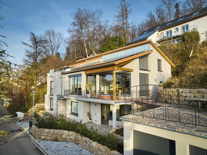 Eingebettet zwischen Schwarzwaldhängen und Freiburger Stadtrand liegt die Gemeinde Merzhausen – und mitten darin ein Wohngebäude, das technologische Raffinesse mit nachhaltigem Upcycling verbindet. Das freistehende Einfamilienhaus aus dem Jahr 1979 war bei seinem Kauf durch Kostas Papadakis im Jahr 2024 energetisch am Ende: Ein veralteter Ölkessel im Keller, ungedämmtes Dach, keinerlei moderne Haustechnik. Dazu noch modrige Wände, dunkle Innenräume und ein „Charme“, den selbst die größten Vintageliebhaber als „altbacken“ bezeichnen würden. Doch der Bauherr, zugleich Geschäftsführer eines Planungsbüros für Gebäudetechnik, erkannte das Potenzial des in die Jahre gekommenen Gebäudes.