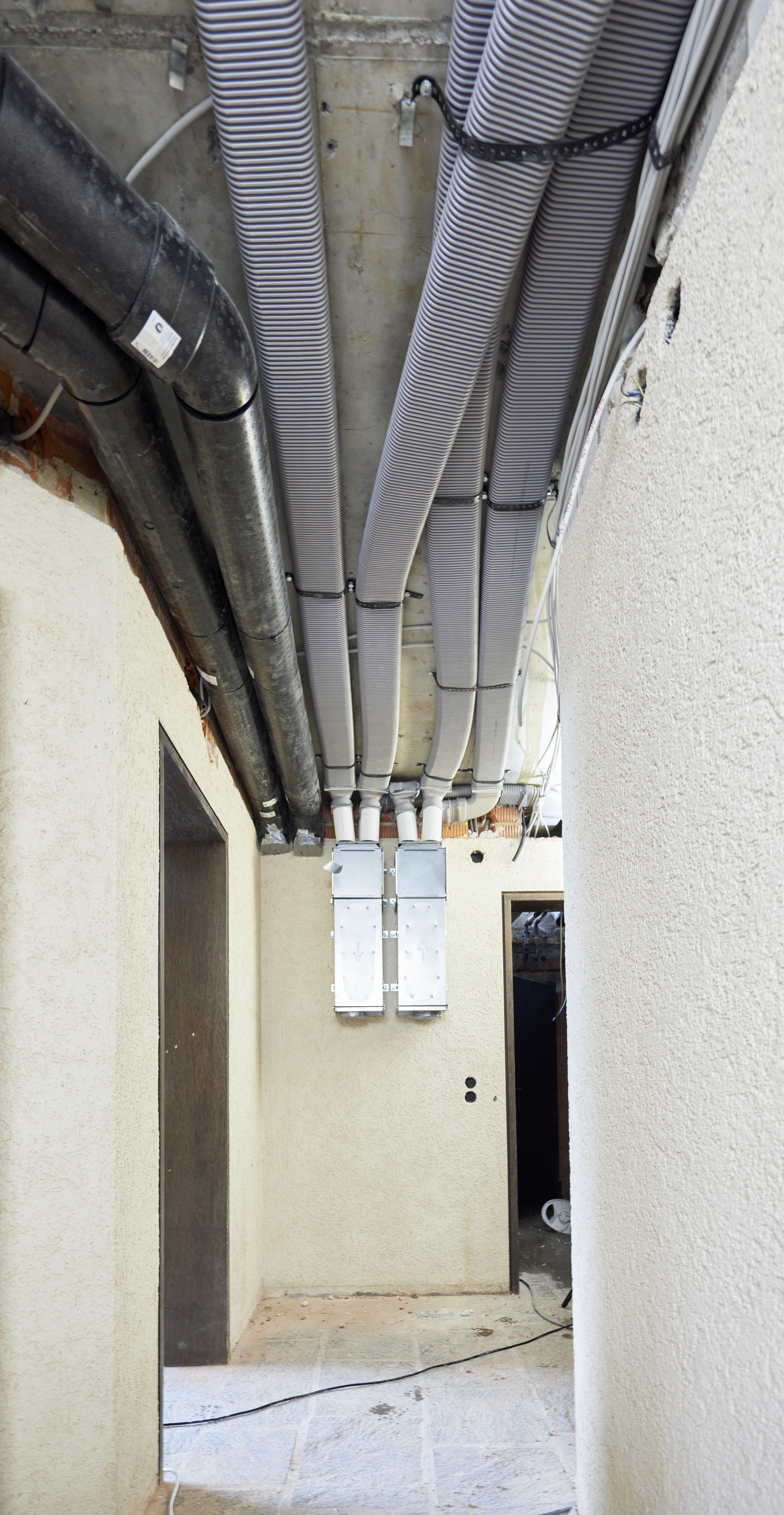 Der Rest ist – wie man so schön sagt – Geschichte. Gemeinsam mit Zehnder konfigurierte der Bauherr ein passgenaues System aus zentralem Komfort-Lüftungsgerät und Luftverteilung, das in den entkernten Rohbau optimal eingefügt werden konnte. Genauer gesagt handelt es sich in dem Merzhausener Sanierungsprojekt um zwei Einzeleinheiten: Um das Haus und die Einliegerwohnung jeweils autark mit Frischluft zu versorgen, entschied man sich dazu, zwei unabhängige Lüftungsgeräte samt zweier Luftverteilsysteme zu installieren.