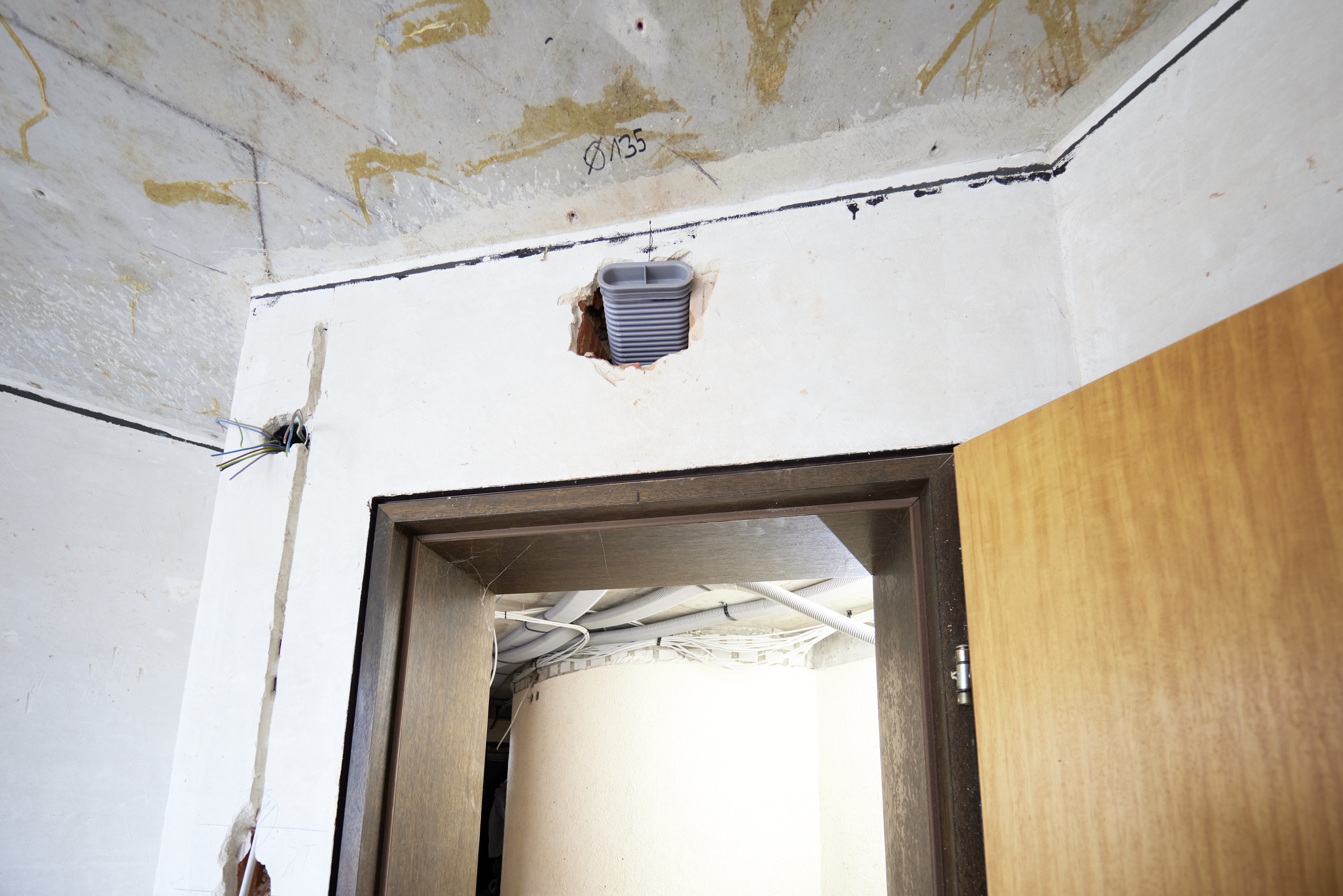 Durch die exzellente Dämmung des Wohngebäudes in Merzhausen, die mit der Effizienzhaus-55-Standard einhergeht, ergab sich allerdings eine neue Herausforderung: Die dichte Gebäudehülle verhindert neben Energieverlusten nämlich auch den natürlichen Luftaustausch, der sonst durch kleine Ritzen und Fugen entsteht. Um feuchte und verbrauchte Luft aus einem modernen Wohnhaus manuell abzuführen, hätte Familie Papadakis etwa alle zwei Stunden stoßlüften müssen, was im Alltag schlicht nicht umsetzbar ist. Zu seltenes Lüften in gut isolierten Gebäuden hat allerdings zur Folge, dass der CO2-Gehalt schnell auf ein bedenkliches Level ansteigt. Andere Schadstoffe, die sich aus Farben, Möbeln oder Bodenbelägen lösen können – auch VOC (volatile organic compounds) genannt – belasten die Atemluft im Raum zusätzlich. Die Folgen sind Kopfschmerzen, Müdigkeit und ähnliche gesundheitliche Beschwerden. Auch führt mangelhafter Luftaustausch häufig zu hoher Luftfeuchte, die wiederum Feuchteschäden und Schimmelwachstum begünstigt. Das birgt nicht nur ernsthafte gesundheitliche Risiken, sondern schadet auch dauerhaft der sorgsam restaurierten Bausubstanz.