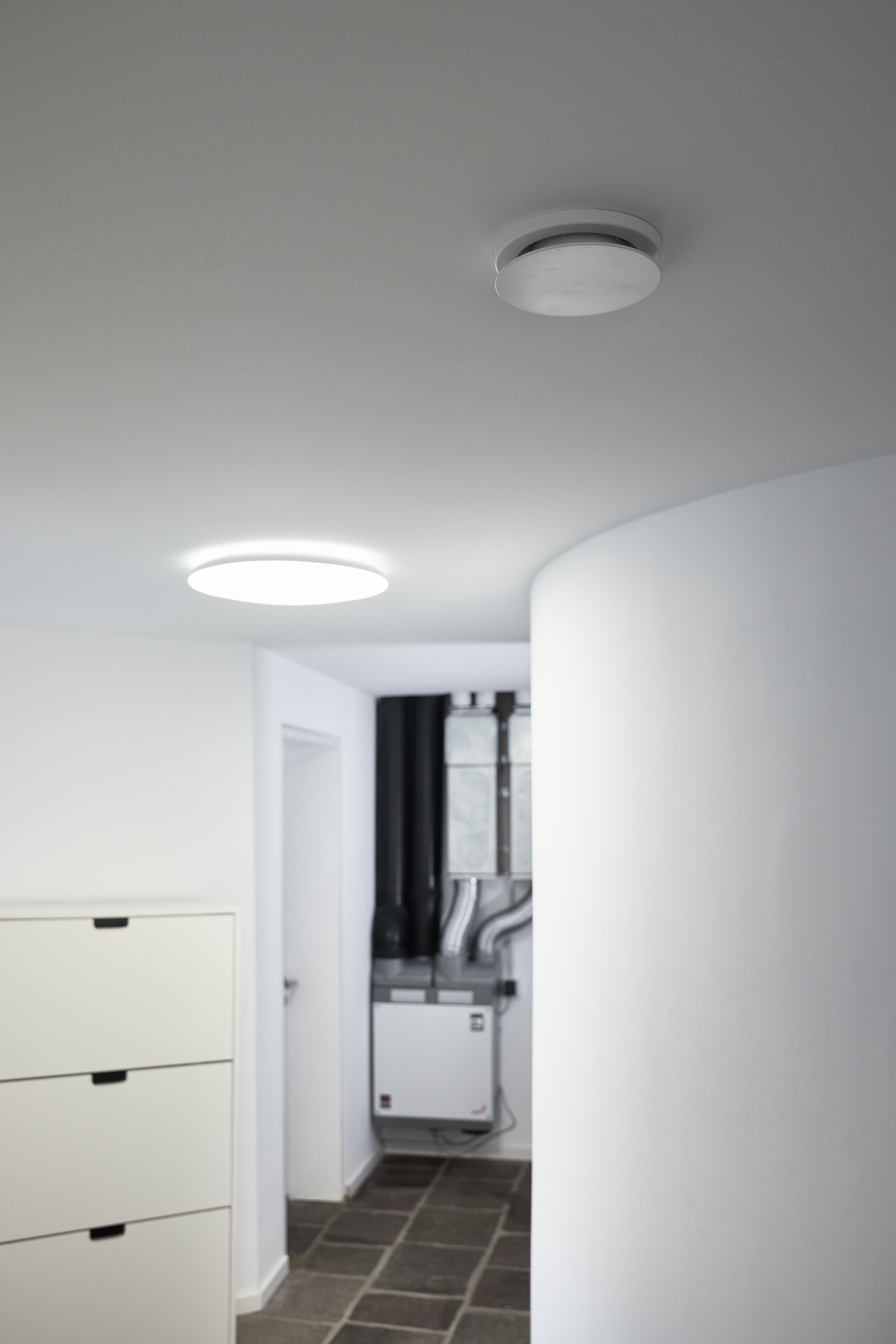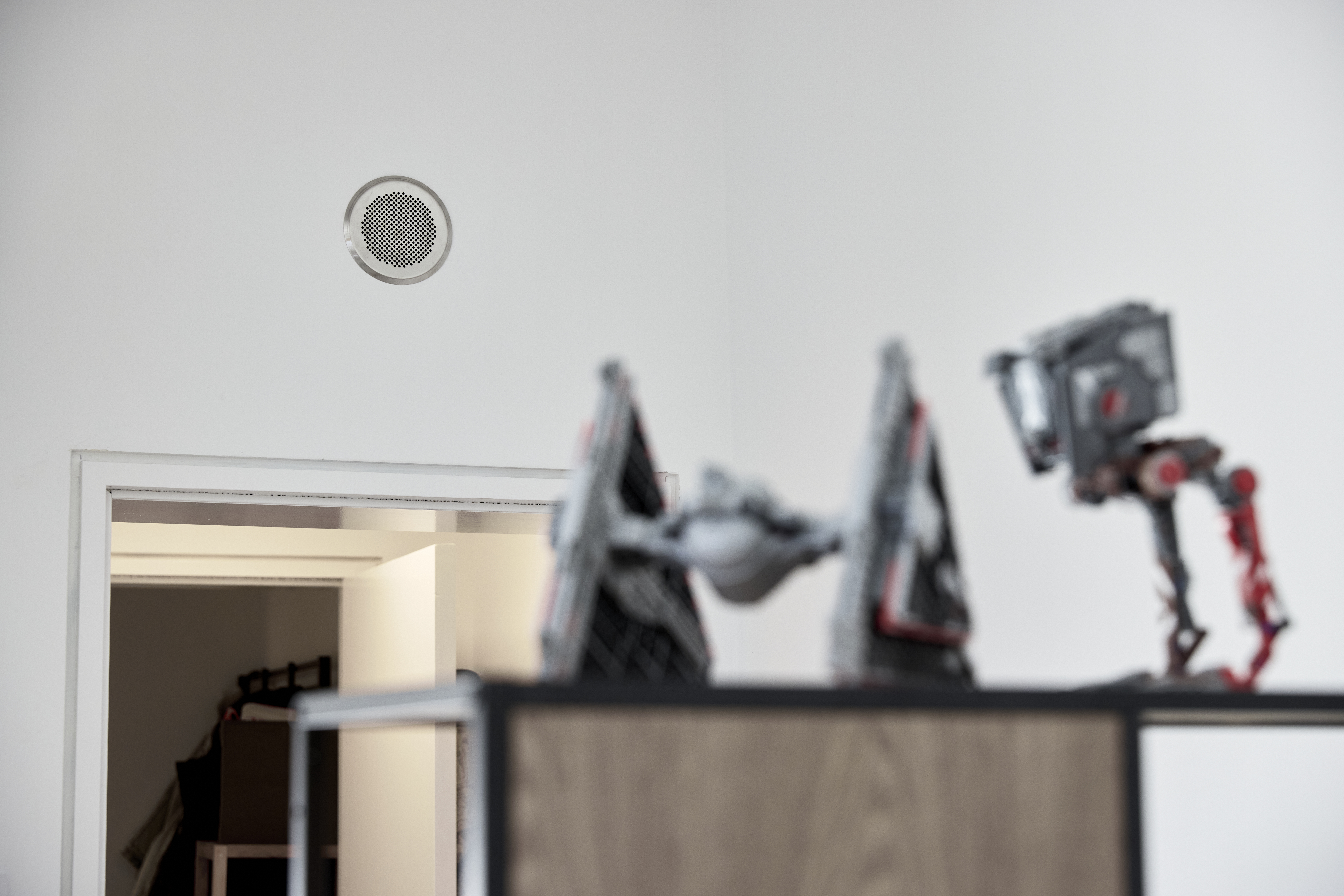 Für die gesamte Wohnfläche der beiden Einheiten von 275 m2 wurde eine Luftmenge von 291 m3/h berechnet. Insgesamt kommen 18 Luftdurchlässe für Zu- und Abluft sowie 210 Laufmeter der Lüftungsrohre Zehnder ComfoTube zum Einsatz. Das flexible Flachovalrohr Zehnder ComfoTube flat 51 ermöglicht eine platzsparende Verlegung in abgehängten Decken oder dem Rohboden, während die Steigstränge mit dem Rundrohr Zehnder ComfoTube 90 realisiert wurden. „Bei Herrn Papadakis hat man sich für eine Verlegung im Boden des Ober- und Erdgeschosses sowie in der abgehängten Decke des Untergeschosses entschieden“, gibt Oliver Geithe, seines Zeichens Leiter Produktmanagement Heizkörper und Komfortlüftung bei Zehnder, zu Protokoll. Das Lüftungsgerät Zehnder ComfoAir Q350 verschwindet im Technikraum der Hauptwohnung, Zehnder ComfoAir 180 passte perfekt in eine ungenutzte Ecke der Einliegerwohnung. „Was man im Alltag wahrnimmt? Lediglich die stylischen Luftauslässe – und das Frischluftgefühl im ganzen Haus“, beschreibt der Bauherr zufrieden die Integration der Komfort-Lüftungssysteme in das stilvolle Raumambiente.