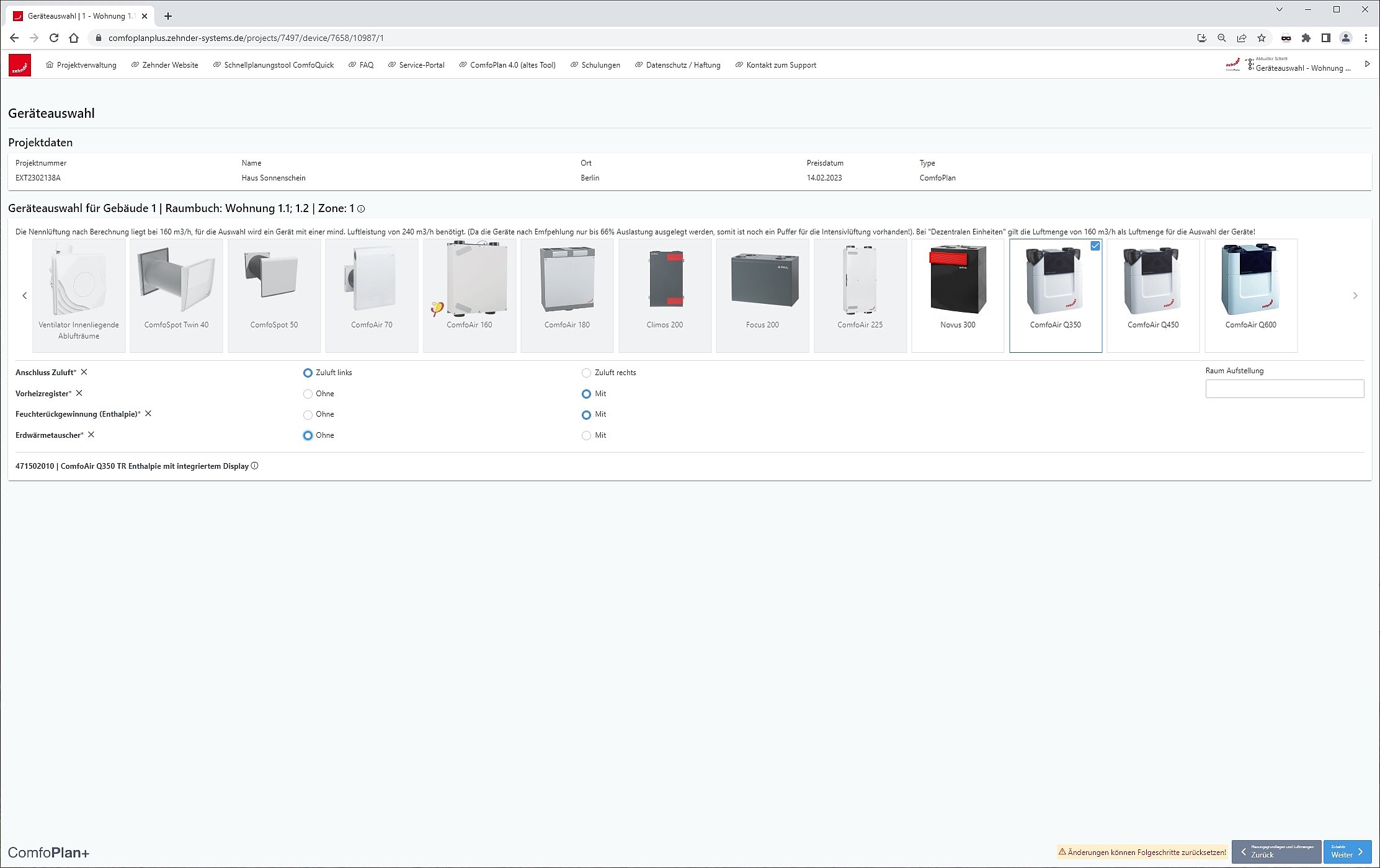 Intuitive Bedienbarkeit, schnellere Ladezeiten und neue Funktionen der Planungssoftware wie z.B. die intelligenten Vorlagen mit vorgefertigten Raumtypen ermöglichen eine noch komfortablere Ausarbeitung. Selbst Änderungen im Grundriss lassen sich mit Zehnder ComfoPlan+ mit einer Umplanung leicht anpassen. Mithilfe der neuen "Share Projekt"- Funktion können Projekte zudem gemeinsam mit Kolleginnen und Kollegen bearbeitet werden, um im Team noch effizienter zu agieren. Neu ist auch der individuelle Import für mehrere Artikelnummern aus Tabellen- oder Textdokumenten direkt in die Materialliste.