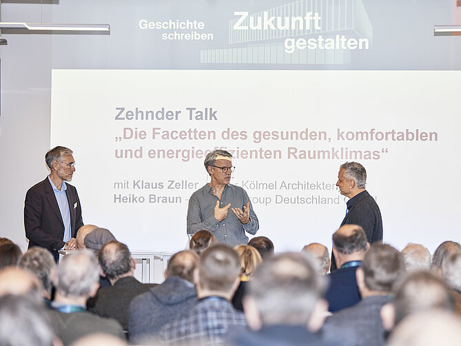 Nicht mehr und nicht weniger als die Zukunft des Bauens stand bei der Veranstaltung im Center of Climate in Lahr zur Diskussion. Zahlreiche Architekten und Planer aus ganz Deutschland hatten Ende November 2023 ihren Weg ins neue Zehnder Firmengebäude gefunden, um dort den drei inspirierenden Expertenvorträgen zu lauschen, sich auszutauschen und nebenbei auch noch mehr über die Produkte und Systeme des Raumklimaspezialisten zu erfahren.