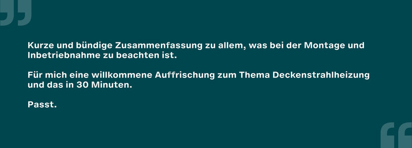 Mit unseren 30-45 minütigen Web-Seminaren erfahren Sie alles was Sie über Deckenstrahlplatten wissen müssen. Durch unterschiedliche Themenschwerpunkte bieten wir die passenden Inhalte - egal ob Sie "Energieeffizienz von Deckenstrahlplatten" kennenlernen oder die "Auslegung von Deckenstrahlplatten" betrachten möchten.