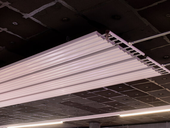 Ausgelegt wurden die Deckenstrahlplatten mit einer Vorlauftemperatur von 45 °C sowie einer Rücklauftemperatur von 35 °C bei 20 °C Raumtemperatur. Die Wärmeenergie liefert eine Niedertemperatur-Wärmepumpe mit einer Leistung von 80 kW.