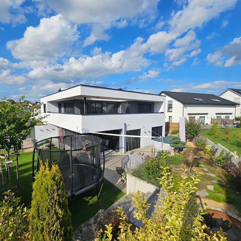 Die moderne Haustechnik des Einfamilienhauses in Dasing bei Augsburg erfüllt sämtliche Ansprüche an energieeffizientes Wohnen. Für Bauherr Daniel Schaffer spielte neben einem nachhaltigen Wohnkonzept auch das Thema „Frische Raumluft“ eine zentrale Rolle. „Als Allergiker lege ich großen Wert auf gute Wohnraumluft. Ein Lüftungsgerät mit integrierten Pollen- oder Aktivkohlefiltern verhindert, dass Schadstoffe und unangenehme Gerüche der nahen Landwirtschaft in den Wohnbereich gelangen. Das hilft mir sehr und reduziert spürbar meine allergiebedingten Beschwerden – Zuhause kann ich Durchatmen.“, erklärt Herr Schaffer seinen Standpunkt für die Relevanz von frischer Luft in Innenräumen.