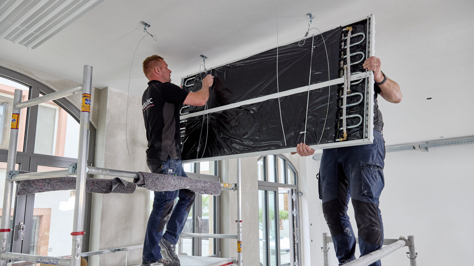 Zehnder Deckenstrahlplatten ermöglichen effiziente Wärmeverteilung und sparen bis zu 40% Energie im Vergleich zu anderen Systemen.