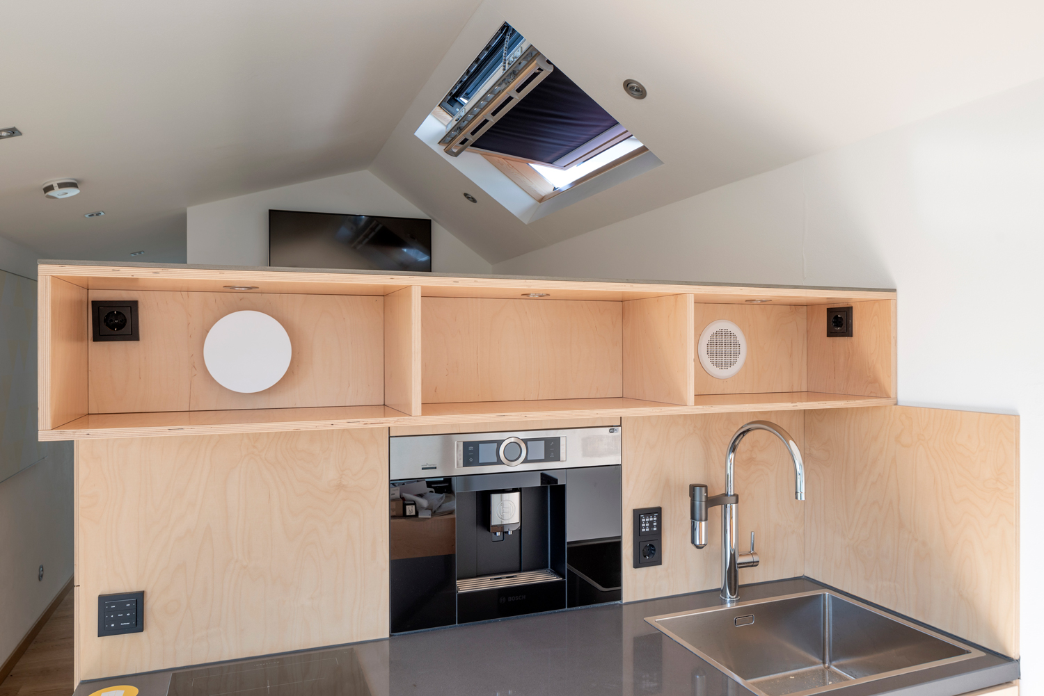 Im kombinierten Küchen- und Wohnzimmerbereich befindet sich jeweils eines der je zwei Ventile für Zu- und Abluft. So werden Kochgerüche schnell und diskret abgeführt und die Bewohner profitieren von einem stets angenehmen Raumklima.