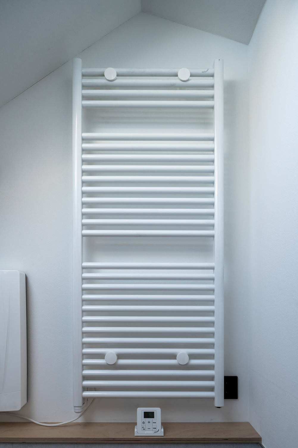 Im Bad unterstützt der Elektro-Heizkörper Zehnder Toga die hausinterne Fußbodenheizung. Wohlige Wärme ohne vorheriges Aufwärmen, individuell einstellbare Tages- und Wochenprogramme sowie die integrierte Timerfunktion sorgen für maximalen Komfort.