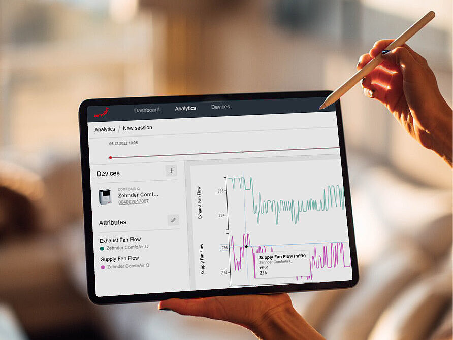 Im Alltag ist es häufig schwierig, eine Verschlechterung des Raumklimas zu erkennen. Die Lüftungsgeräte von Zehnder verfügen daher über integrierte Sensoren, die dazu beitragen, die Luftqualität zu messen und bestmöglich zu verbessern