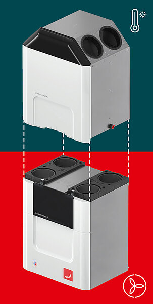 Die perfekte Gerätekombination für Wohngesundheit: Häuser werden energieeffizient gekühlt und eine Überhitzung verhindert – gleichzeitig wird die Schadstoffbelastung im Haus reduziert und für die Zufuhr von 100% Frischluft gesorgt. Für ein gesundes Wohlfühlklima zu jeder Jahreszeit!